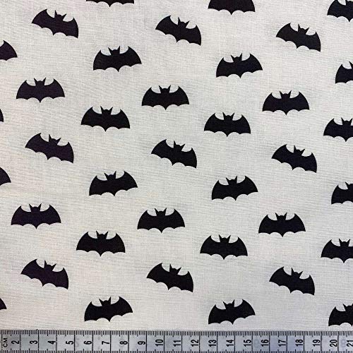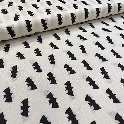 Kt KILOtela - Tessuto patchwork con stampa digitale, 100% cotone, 100 cm di lunghezza x 140 cm di larghezza, motivo Batman, pipistrelli, bianco, nero, 1 metro