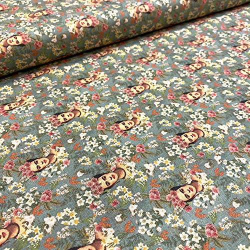 Kt KILOtela - Tessuto Patchwork - Stampa Digitale - 100% Cotone - Tessuto da 50 cm Lunghezza x 140 cm Larghezza | Frida, Fiori - Verde, Bianco ─ 0,50 Metro