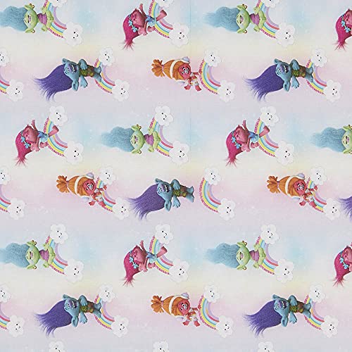 Kt KILOtela - Tessuto Popeline Stampato Digitale - 100% Cotone - Tessuto 100 cm Lunghezza x 150 cm Larghezza | Trolls Pop - Multicolore, Bianco ─ 1 Metro