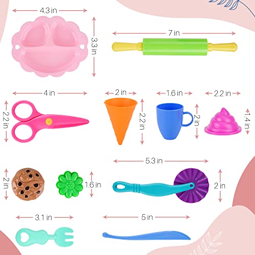 【KIT DI STRUMENTI PER L'IMPASTO】: il set di giocattoli per plastilina da 27 pezzi include accessori per gelato, stampi per biscotti e cupcake, mattarelli, formine, forchetta per torte e una custodia ecc. La varietà è colorata e stimola all'infinito l'immaginazione e la creatività dei bambini.