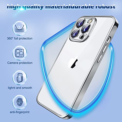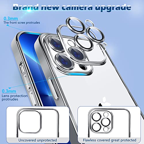 KimFiyny Crystal Clear iPhone 13 Pro Cover, trasparente mai giallo, con protezione fotocamera, trasparente resistente agli urti Custodia morbida (Argento)
