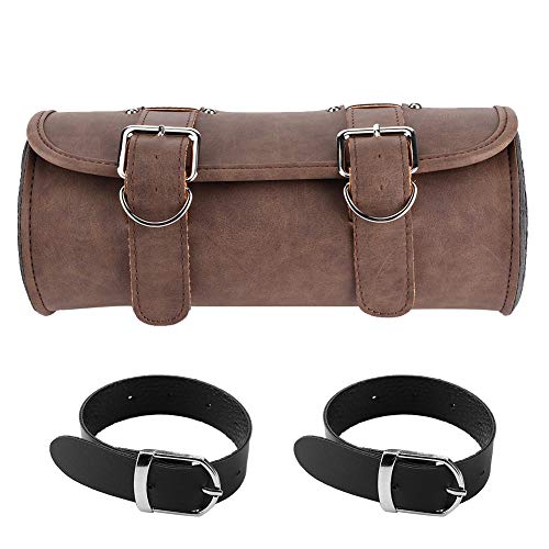 KIMISS Borsa da sella Borsa da sella universale per moto Borsa porta attrezzi in PU marrone stile vintage con cinturino