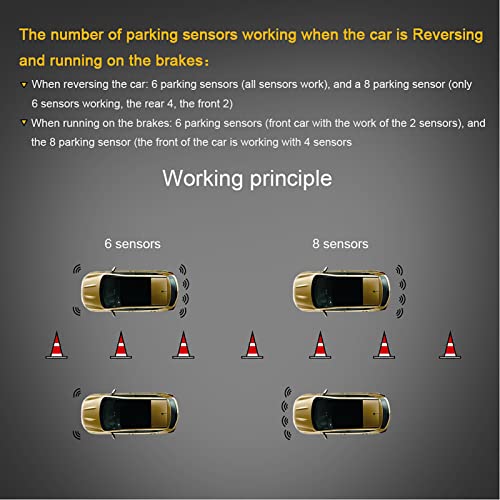 【Radar ad alta sensibilità】 Con la tecnologia avanzata del sensore radar, questo sistema a 4 sensori utilizza onde sonore e componenti elettronici ad alta tecnologia per guidarti in situazioni di parcheggio strette, indicando chiaramente quando sei vicino a un oggetto, in genere un'auto parcheggiata e qualsiasi altro pedoni e familiari che si trovano attorno al veicolo in movimento.
