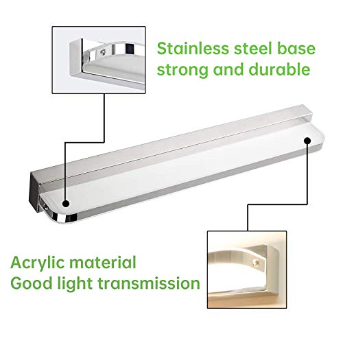 【Materiali di alta qualità e sicuri】Applique da Bagno è realizzata in acciaio Inossidabile e acrilica, lo strato esterno è cromato, che ha le funzioni di antiruggine e anticorrosione. La lunghezza è di 42 cm, il corpo della lampada è sottile e la dissipazione del calore è buona