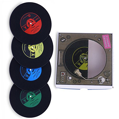 Kimming - Sottobicchieri a forma di dischi in vinile in stile vintage, 4 pezzi