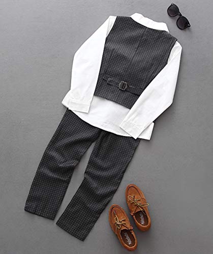 Kimocat Costume Ragazzo 6-7 Anni Outfit Matrimonio Cerimonia Party Pack di 4 Camicia a Maniche Lunghe + Gilet + Pantaloni + Accessori Completo Formale Nero