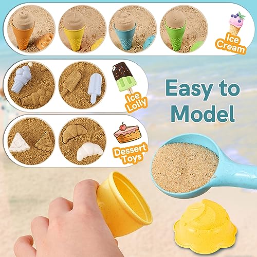 Kimonca Giocattoli da Spiaggia per Bambini, Giochi Gelato con Secchio, Mare Sabbia, Stampi Regalo per 3 4 5 6 Anni Ragazzi