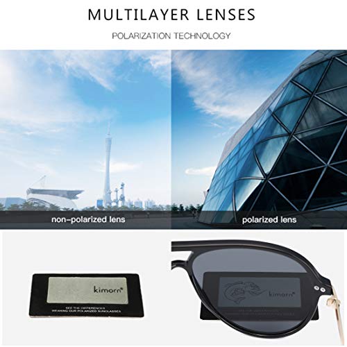 Kimorn Classic Occhiali da sole polarizzati per donna Uomo Lenti UV Montatura in metallo ultraleggero Tonalità retrò K0804 (Nero)
