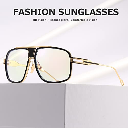 Kimorn Occhiali Da Sole Per Uomo Retro Goggle Cornice metallica Classico AE0336 (Oro/Lente Filtro Blu Ray, 62)