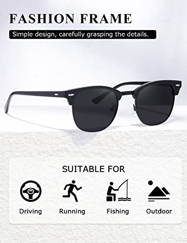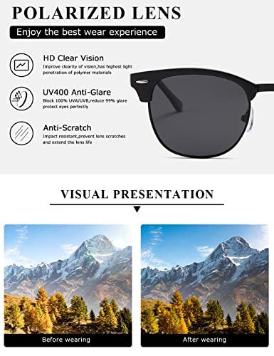 Kimorn Polarizzate Occhiali da sole Unisex Retro Semi-Rimless Telaio Occhiali Classici AE0550 (Nero, 52)