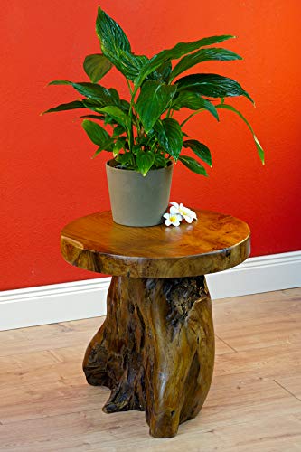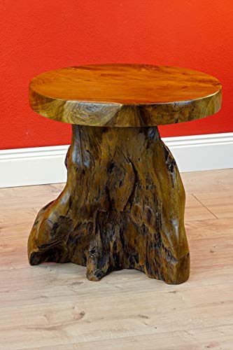 Kinaree Tavolino in legno massello JOMTIEN - 40 cm rotondo radice tronco d'albero, sgabello - supporto per fiori