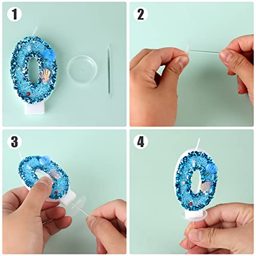 KINBOM 7,5cm Candele Numeri Torta, Glitter Candela Numero Blu Conchiglia Paillettes Candele di Compleanno Numero per Compleanno Anniversario Festa a Tema Sirena (Numero 9)