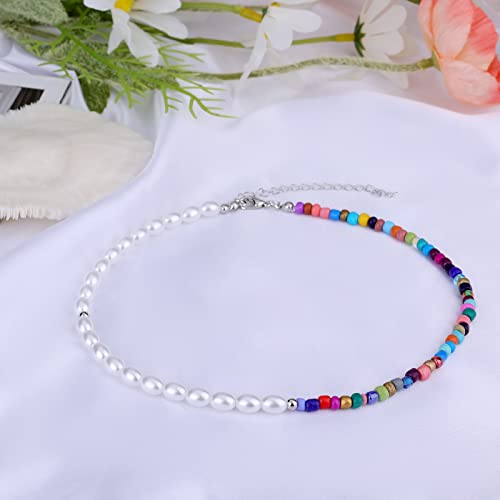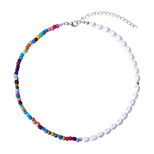 KINBOM Collane Girocollo con Perline, Collane con Perline Piccole, Collana con Perline Colorate Fatte a Mano, per Donne Ragazze(Stile Perla)