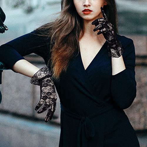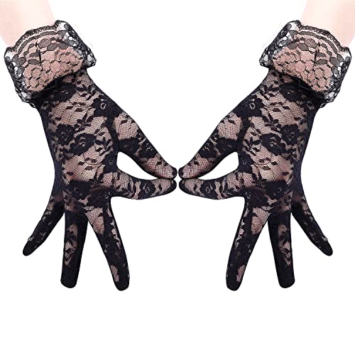 KINBOM Guanti in Pizzo da Donna Guanti Corti Eleganti Guanti in Pizzo a Rete Splendidi Guanti da Sposa da Polso Matrimonio Tea Party Prom Cosplay Anni '20 (Nero)