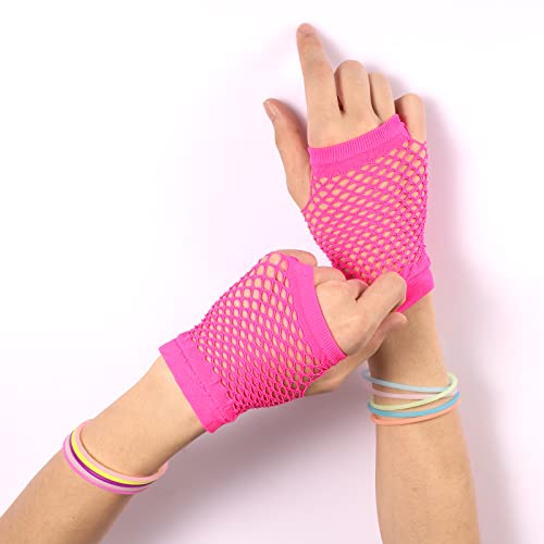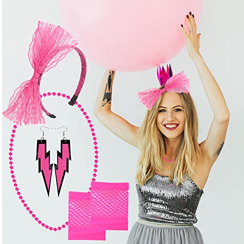 Prodotto include: riceverai 1 paio di guanti a rete senza dito, 1 paio di orecchini vintage e 1 pezzi di testa in pizzo, collana da 1 pcs e braccialetti in plastica in bracciale neon 10pcs, 16pc in totale, grandi accessori anni '80 per le donne in qualsiasi festa per divertirsi.