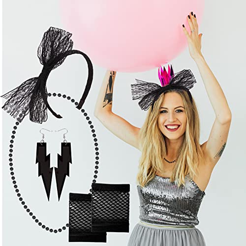 KINBOM 16 pezzi Accessori Anni 80, Pizzo Anni 80 Guanti Anni 80 Orecchini Anni 80 Bracciali Anni 8 Collana Anni 80 Fascia Anni 80 Accessori Anni 80 Donna Accessori Anni 80 Party Anni 80 Party (Nero)