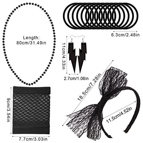 Materiale premium: la nostra fascia per la testa in pizzo degli anni '80 è realizzata in tessuto in pizzo, materiale morbido e affidabile, comodo da indossare, ben fatto, durevole per uso a lungo termine, i guanti sono realizzati con un buon nylon elasticizzato, flessibile per adattarsi alla maggior parte delle donne, orecchiniE perle di collana, bracciali sono realizzati in silicone, leggeri da trasportare e indossare, questo set è una scelta preferibile!