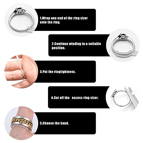 Ampia Applicazione: Con diverse specifiche e design trasparente, il set di regolazione della dimensione dell'anello è ampiamente appropriato per anelli liberi, anelli di nozze e così via per donne e uomini.