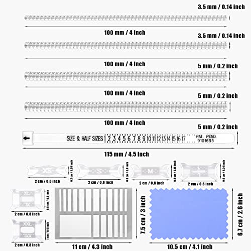 KINBOM 21 Pezzi Anello Regolatori, con Panno di Lucidatura Strumento Riduttore per AnelloInvisibile Riduttore Dimensione Anello di Misura Trasparente per Fedi Nuziali da Donna