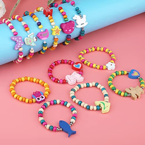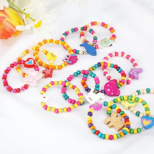 KINBOM 12 pezzi Braccialetti con Animali, Braccialetti con Perline Colorate Braccialetti per Feste Moda Braccialetto per Bambine Braccialetti in Legno con Perline per la Festa di Pasqua (Multicolore)
