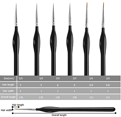 Il prodotto include: il nostro pacchetto include 5/0, 3/0, 2/0 specifiche, 2pc per ciascuna specifica.Il pennino Superfine è molto adatto a lavori dettagliati complessi, modelli, dipinti in miniatura e micro dipinti, ottimo strumento per la creazione di opere d'arte.