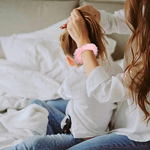 KINBOM 2 Pezzi Elastici per Capelli in Peluche di Pelliccia di Coniglio, Elastici Soffici per Capelli Elastici per Capelli a Coda di Cavallo Accessori per Capelli,Fascia per Capelli(Rosa Chiaro)