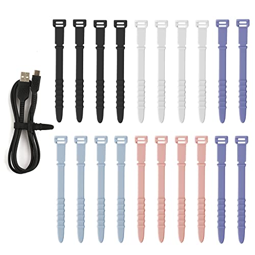 KINBOM 20 Pezzi Fascette per Cavi in Silicone, Fascette Elettricista Riutilizzabili Fermacavi Elastico Silicone Gestione Dei Cavi per Sacchetti Cavi Cuffie Forniture Ufficio Casa (5 Colori)