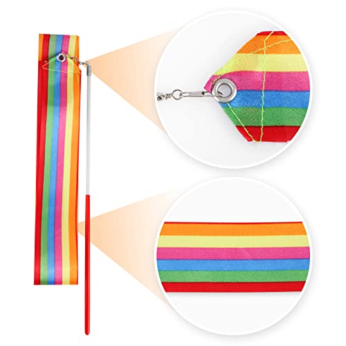 KINBOM 2 Pezzi Nastro da Ballo, Dance Ribbons da 2 m Nastro da Ginnastica per Bambini Allenamento Spettacolo di Talenti Danza Artistica, con Bacchetta a Nastro (Arcobaleno + Raso Colorato)