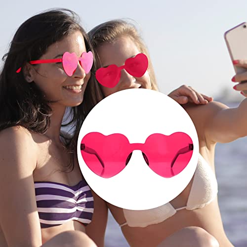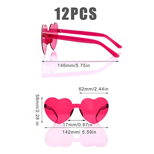 KINBOM 12 Pezzi Occhiali da Sole Senza Montatura a Forma di Cuore, Cuore d'Amore Occhiali da Sole Colorati Trasparenti Occhiali Senza Montatura Color Caramello per le Donne Party Cosplay (Rosa rossa)