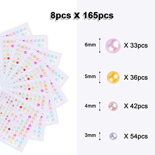 KINBOM 1320 pezzi Perle Adesivi per Viso, 3 mm/4 mm/5 mm/6 mm Perle Adesive Viso, Adesivi per Perle per Artigianato Trucco Viso Nail Art Cellulare Album (Colore Misto)