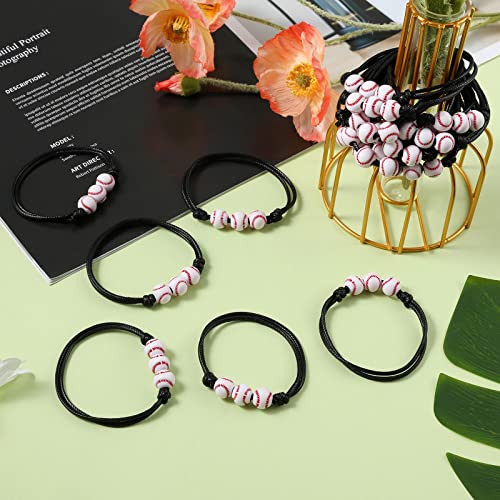 KINBOM 20 Pezzi Regolabili Bracciale Baseball, Braccialetti da Baseball con Perline Braccialetti Softball Sfusi Braccialetti Sportivi per Squadre Bomboniere per Donne Uomini Adulti Adolescenti(Nero)