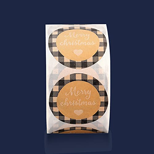 KINBOM 500 Pezzi 3.8cm Rotondi Buon Natale Adesivi Sigilli Etichette Rotolo per Biglietto, Regalo, Busta, Scatola, Borsa Decorazioni (Nero e Bianco Buffalo Plaid)
