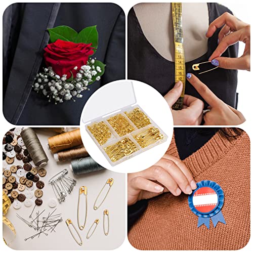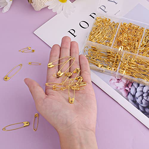 KINBOM 350 Pezzi Spille da Balia Colorate, 22/32/38/45/55mm Spille da Balia in Metallo Assortito per Cucito Artistico e Creazione di Gioielli (Oro)