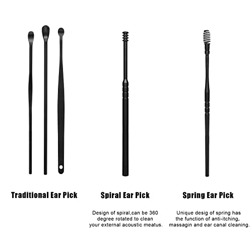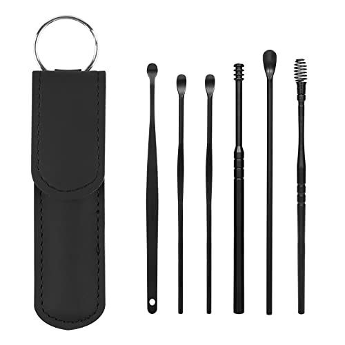 KINBOM 6 Pezzi Strumenti per la Rimozione del Cerume, Innovativo Detergente per Cerume a Molla Set con Custodia Portatile, Detergente per Curette per Pulisci Orecchie per la Pulizia del Cerume (Nero)