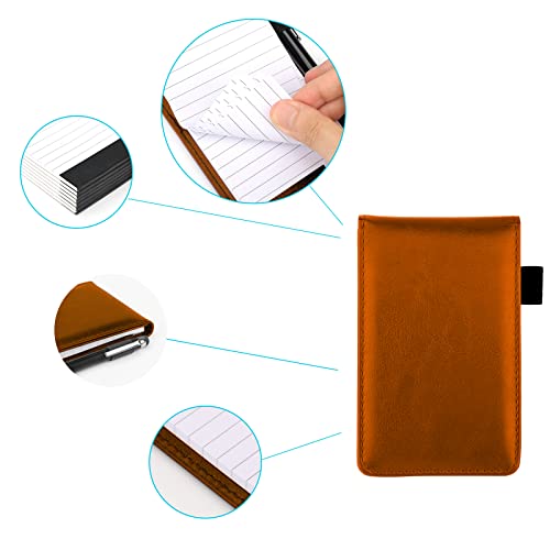 KINBOM Piccolo Blocco Note in Pelle con 8 Pezzi 7,6x12,7cm Taccuini Sostitutivi e una Penna in Metallo Mini Blocco Note Portatile Multifunzionale Libro Memo per Studenti Adulti (Marrone)