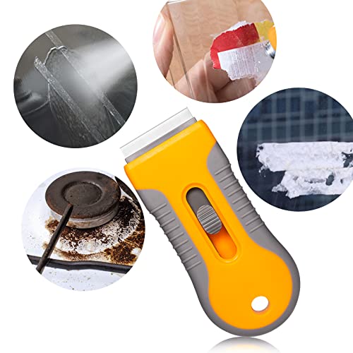 Portable da trasportare: questo raschietto in plastica ha un design retrattile che rende facile nascondere la lama del rasoio semplicemente premendo semplicemente il pulsante grigio.Il raschietto di dimensioni ridotte è di circa 4,9 cm di larghezza e da 10,7 cm, facile da montare nella tasca o nella casella degli strumenti per un facile accesso durante il lavoro.