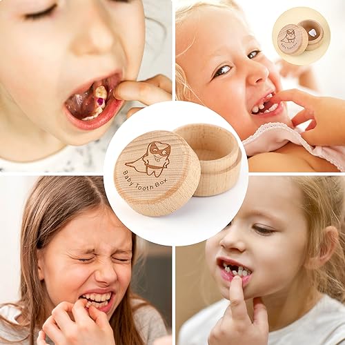 KINBOM Scatolina dei Dentini, Scatola Porta Denti in Legno Scatola Porta Denti Scatola Porta Denti per Perdita di Denti Neonati e Bambine