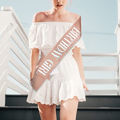 KINBOM Strass Diadema e Fascia Compleanno per Donna, Shinny Glitter Compleanno Tiara Corona Copricapo Fascia per Capelli Birthday Tiara Birthday Girl Crown Sash Articoli per Feste con Spilla, Oro rosa
