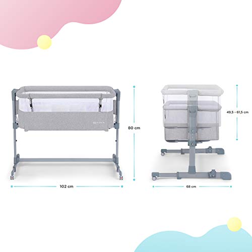 Kk Kinderkraft Culla da Affiancare NESTE AIR, Lettino Co-Sleeping, Regolabile, Facile da Montare, Circolazione d'aria, Accessori, Materasso, Grigio