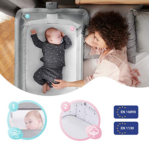 ✅ MULTIFUNZIONALE: Il lettino accostabile 2 in 1 per neonati e bambini fino ai 75 cm di altezza e 9 kg di peso (dipende quale dei due avviene prima), utilizzabile in modo sicuro fino al momento in cui il bambino impara a sedersi. Può essere impiegato come una culla accostabile oppure come un lettino autonomo. Poiché Tutte le pareti laterali sono realizzate in rete, il lettino è ideale per le giornate calde