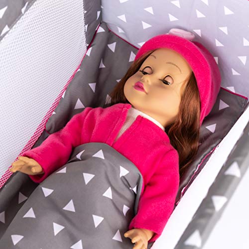 Kinderplay Lettino Bambole | Lettino per Bambole - Culla per Bambole | Bambola Accessori | Lettino Bambole Lunga Fino a 46 cm | Include Borsa per Trasporto | Culla Bambole, Model KP0400S