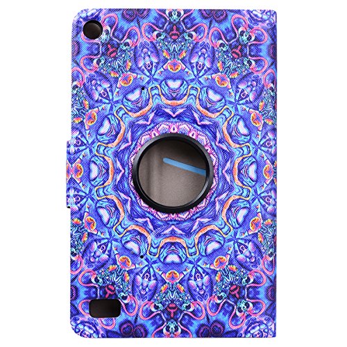 WE LOVE CASE Kindle Fire HD 7 2015 Cover Wallet Mandala Fiore Totem Vintage Style Kindle Fire HD 7.0" 2015 Gen Custodia Pelle Flip Blu Onda Copertura PU Leather Inter Silicone TPU Bumper, Antiurto Protettiva Portafoglio Bookstyle con Supporto di Libro Stand Backcover, Elegante Belle Donna Caso e Carte Slot + Chiusura Magnetica Cassa per Amazon Kindle Fire HD 7