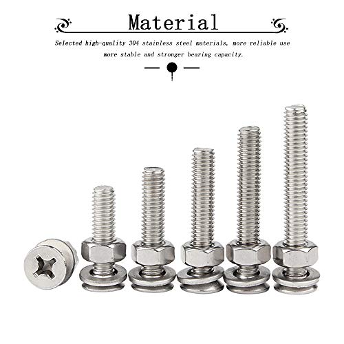 KINDOYO Vite a Macchina - M6*(20-50mm) Acciaio Inox Vite a Testa Svasata Metrica Viti a Testa Piatta Croce con Rondella Dado, M6*20mm(15pcs)
