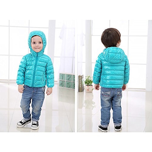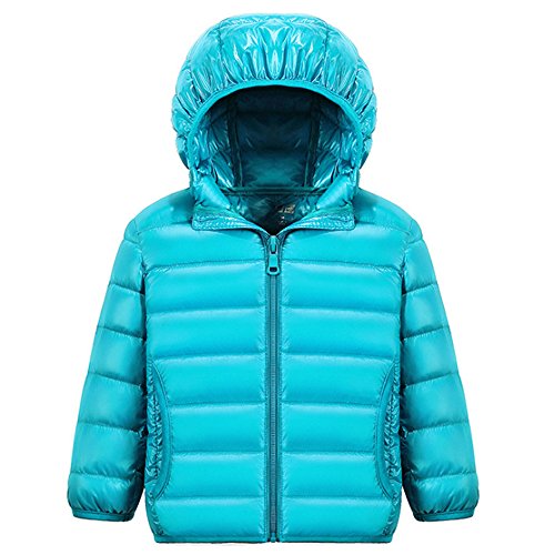 KINDOYO Piumino Bambini Bimbi Ragazzi Ragazze Bimba Bambina Imbottita Cappotto a Vento Giacca Sportiva con Un Cappello - Acqua Verde