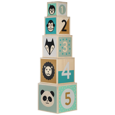 Divertimento animale con scimmia, panda e co. La torre impilabile in legno Kindsgut combina un Design infantile e bei colori discreti con legno di alta qualità tiger . L'amorevole design t giocattolo educativo si adatta perfettamente al look ridotto di modern la stanza dei bambini. Giocare con la torre di legno impilabile aiuta il bambino a migliorare le sue capacità motorie. Inoltre, l'apprendimento dei numeri da 1 a 5 può avvenire in modo giocoso. I colori tenui e i motivi infantili rendono il giocattolo l'aggiunta perfetta e un impressionante eye-catcher nella vostra casa. Tutti i cubi possono essere impilati uno dentro l'altro per uno stoccaggio ottimale. Dettagli del prodotto: Dimensioni (lunghezza x larghezza x altezza): 12,5 x 12,5 x 47,5 cm Peso: 680 g Giocattolo di apprendimento/giocattolo di legno per sviluppare le capacità motorie del bambino e la comprensione dei numeri 5 blocchi di legno con motivi di animali: Per impilare e mettere l'uno nell'altro Combinazioni di colori discreti e di buon gusto Materiale: legno di alta qualità, privo di sostanze nocive e adatto ai bambini Età: da 18 mesi