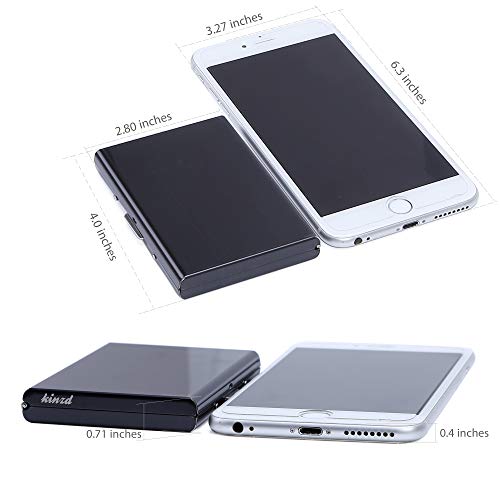 Kindz, custodia ultra sottile in alluminio per carte di credito, con tecnologia di blocco RFID, unisex, 6 tasche in PVC e cassa in resistente acciaio inox Black