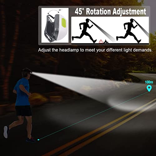 Torcia da testa con Sensore: Torcia da testa aggiunge il design del sensore di movimento. Basta agitare la mano davanti al torcia da testa per accendere o spegnere la luce quando è in modalità sensore. Campo di rilevamento: 10-15 cm. Usa questa luce frontale al posto della torcia portatile per tenere le mani libere.