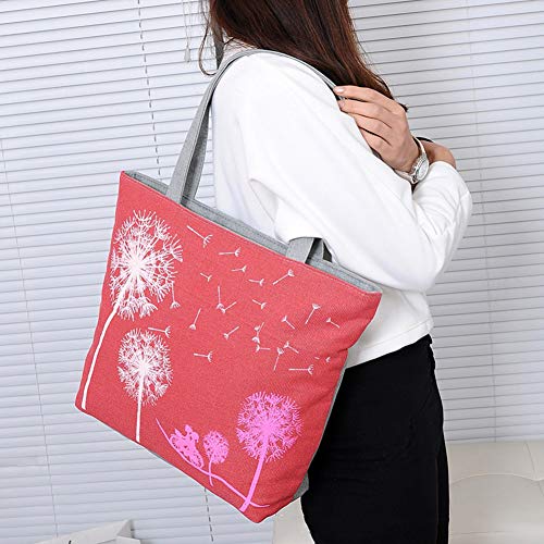 KingbeefLIU Borsa A Tracolla Fashion Dandelion Printed Tote Pouch Borsa A Tracolla Grande capacità da Donna Rosso