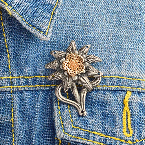 KingbeefLIU WW2 Esercito Tedesco Elite Mountain Edelweiss Badge Giacca di Jeans Colletto Spilla Pin Elegante Spilla Regalo Gioielli Vintage