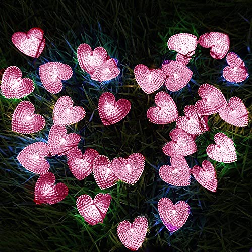 KINGCOO Catene Luminose Esterne, Impermeabile 20ft 30LED Amore Cuore Natale Solare Stellato Decorativo Luci Stringa con 8 modalità per Giardino Nozze Festa Terrazza Illuminazione (Rosa)